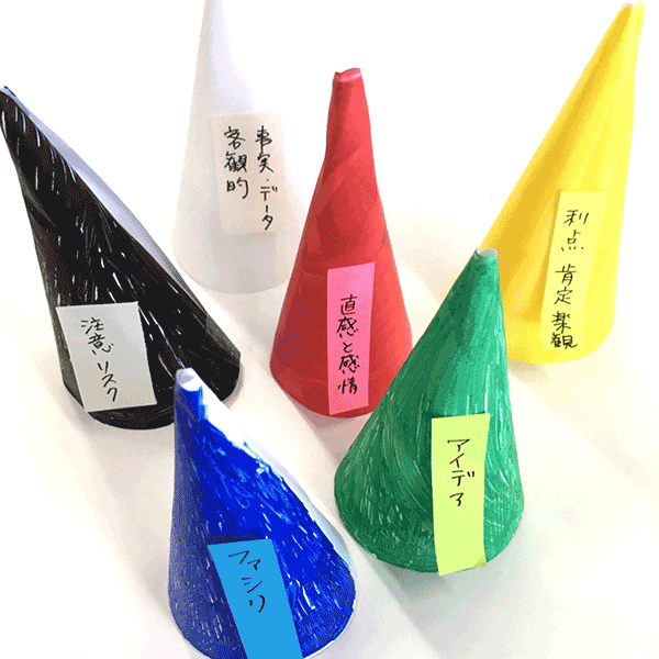 思考の癖で偏りがちになってしまう時に、それぞれの帽子をかぶって意図的に違う意見をだしてみるのはいいのではないか?