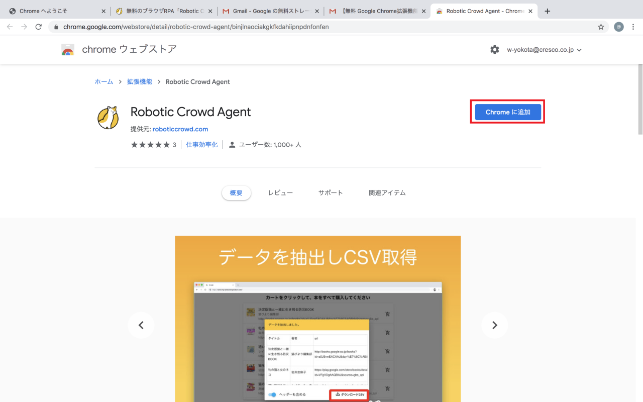 3.メールを受信するため、受信したメール内のリンクからChrome ウェブストアにアクセスしてChromeに追加をクリックしてください。