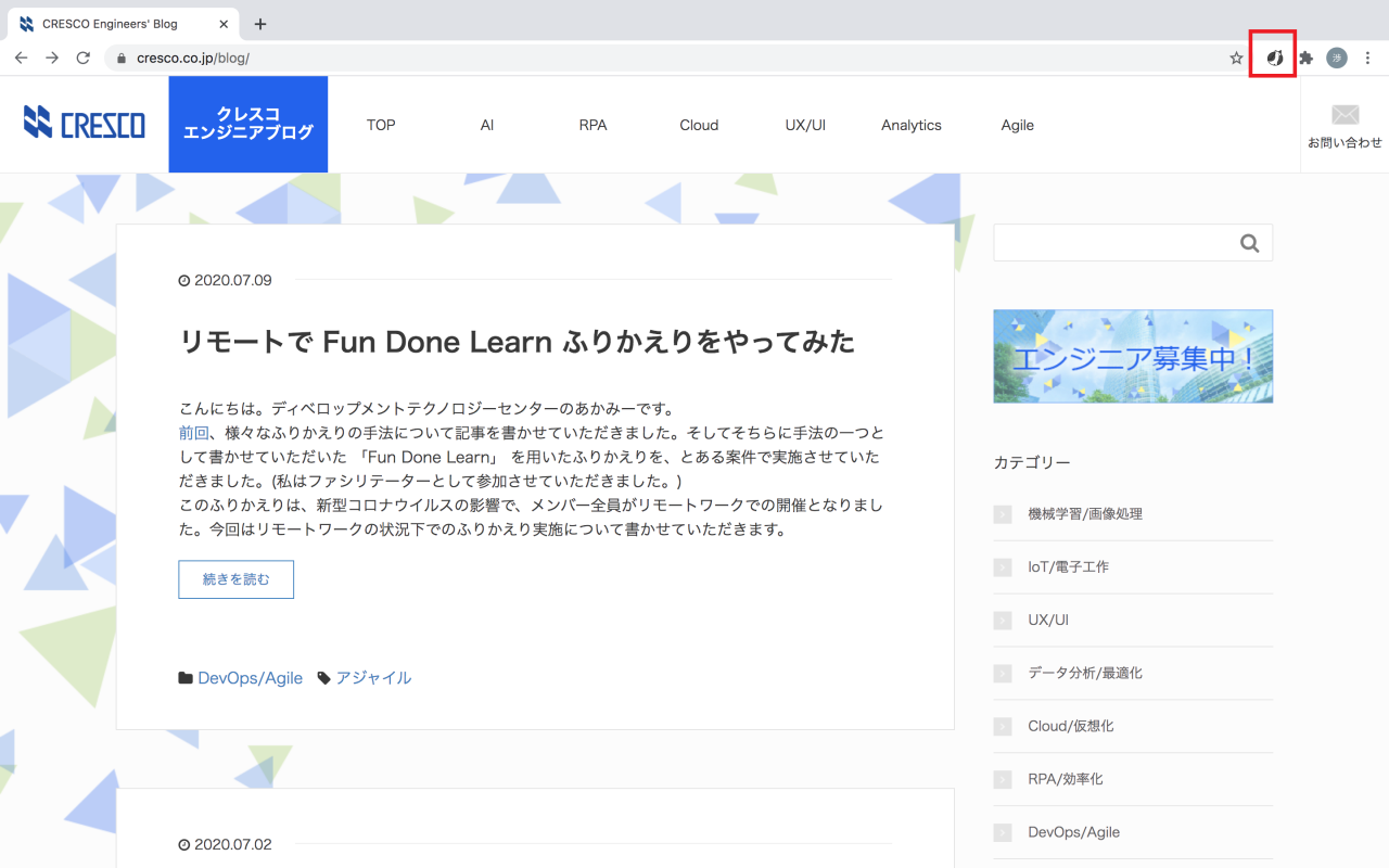- クレスコエンジニアブログを開きます。