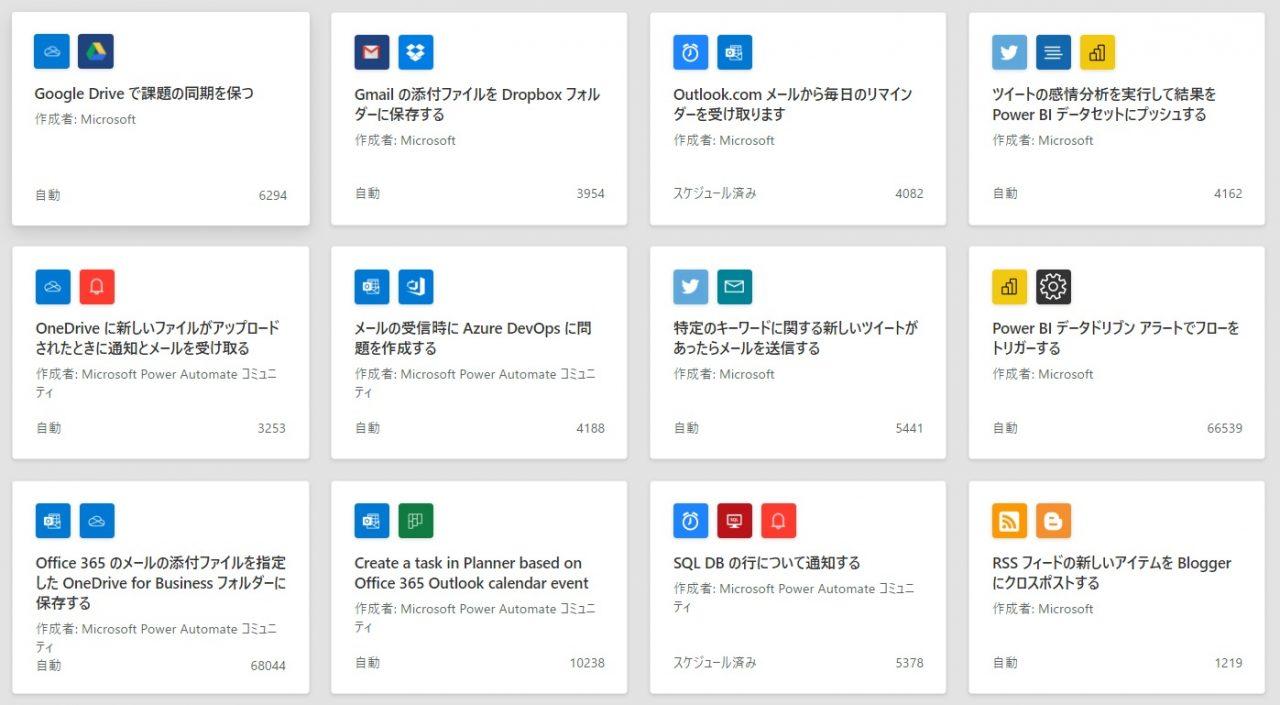 そんな時は、Microsoftが標準で用意しているトリガー、アクション、コネクタを既に組合わせたテンプレートが存在します。様々な業務シーンに合わせたテンプレートを選択することで、簡易的かつスピーディに自動化処理を作成することができます。