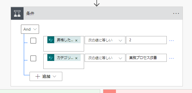 次に、たった今選んだ条件アクションの条件式を設定します。