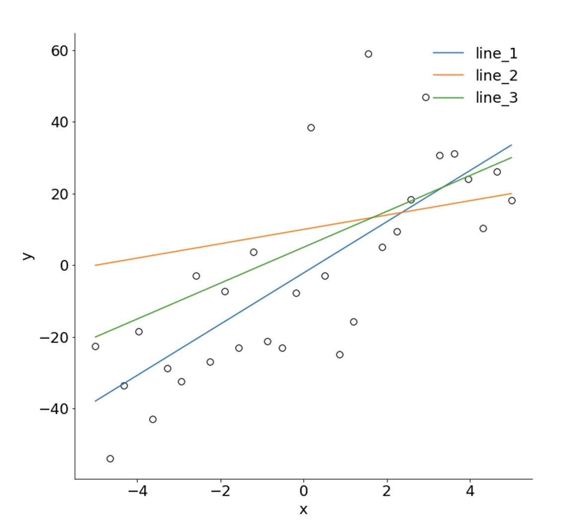 この3つのモデルの中でline_1が一番データに合っていることがわかりました。