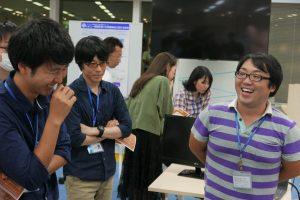 続く第二部はポスターセッションです。ポスター展示やデモを利用しながら、各研究員にて研究成果を発表しました。ポスターセッションは直接研究員と会話してもらう良い機会です。プレゼンテーション方式とは違い、読み手の理解度や興味に合わせた会話が出来たり、議論してもらうことで、お互いに刺激を得ることが出来ます。