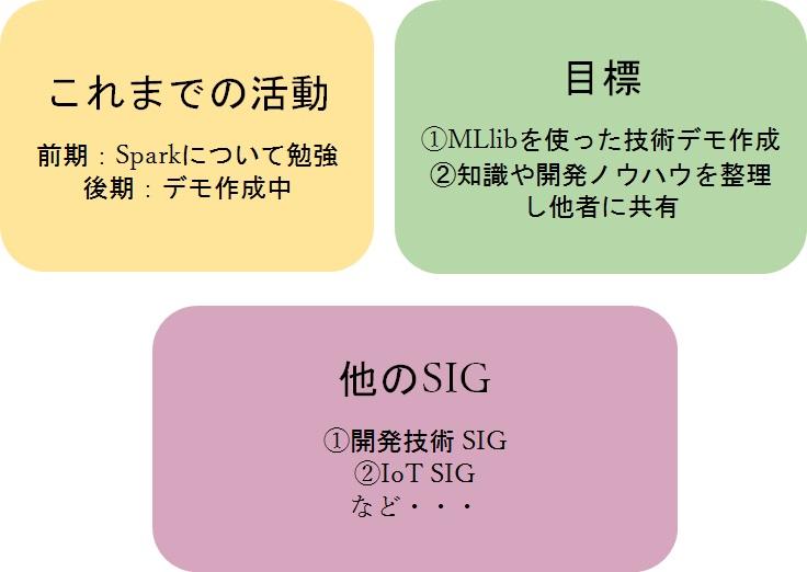 オープンソースソフトウェアの中でも今期はSparkに焦点を当て、活動している。