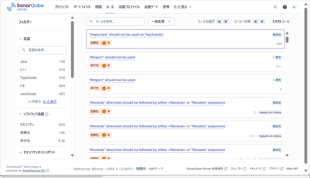 | 対応バージョン | SonarQube Server Community Build 25.5 以降 SonarQube Server 開発者版 / エンタープライズ版 / データセンター版 2025.5 以降 ※手動でインストールする場合、上記バージョン以外にも導入可能ですが動作が不安定になる可能性がある点ご注意ください。  |
