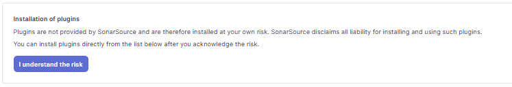 - (初回の場合)サードパーティ製のプラグインインストールのリスクと、自己責任になる旨を理解し、[I understand the risk] ボタンを押下