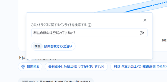 質問ボタンでは、自然言語でインサイトを検索することができます。