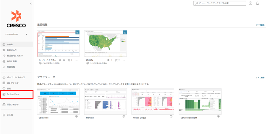 メニューバーからTableau Pulse画面に移動します。