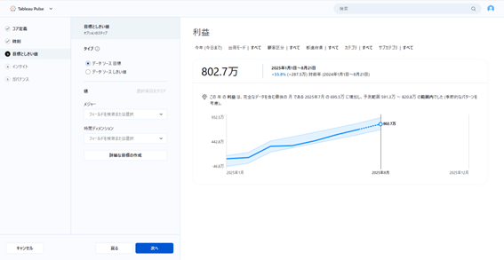 ここでは、より分かりやすいインサイトを作成するための設定値を入力していきます。