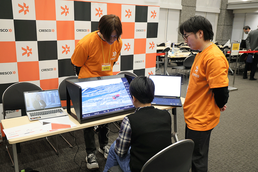 なお、当社は、全国大会当日、ホール前のロビーにブースを出展。専用メガネやVR機器なしで立体的画像を体験できる3Dディスプレイを展示、製作した社員が仕組み等を説明し、参加する児童やその他の来場者より好評を博しました。